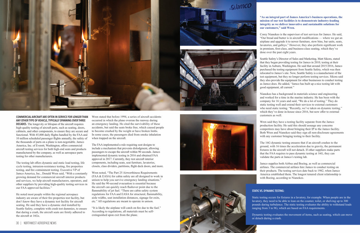 “ As an integral part of Jamco America’ s business operations, the mission of our test facilities is to demonstrate industry-leading integrity as we deliver innovative and sustainable solutions for our customers,” said Wren.