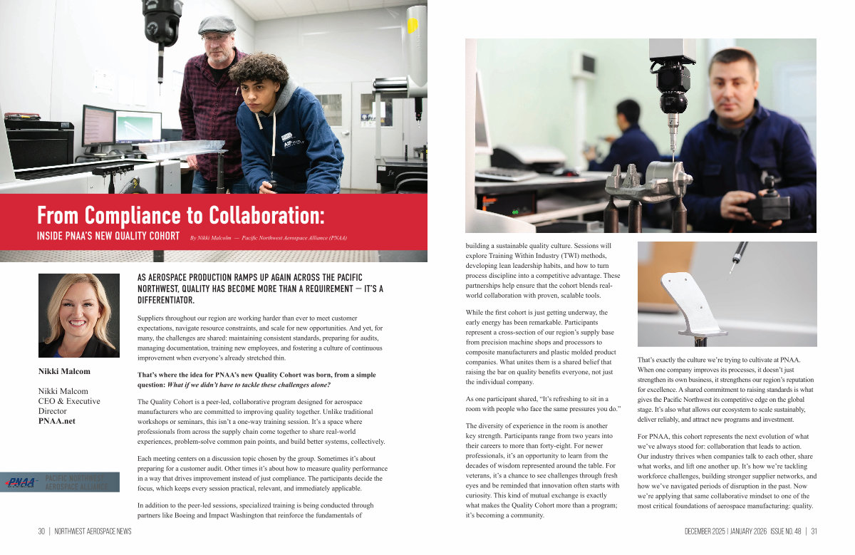 For PNAA, this cohort represents the next evolution of what we’ ve always stood for: collaboration that leads to action. Our industry thrives when companies talk to each other, share what works, and lift one another up. It’ s how we’ re tackling workforce challenges, building stronger supplier networks, and how we’ ve navigated periods of disruption in the past. Now we’ re applying that same collaborative mindset to one of the most critical foundations of aerospace manufacturing: quality.