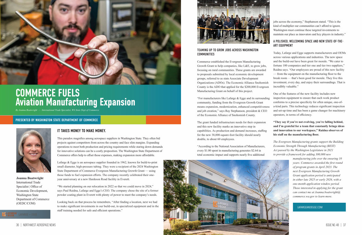 “ For manufacturers like Lafarge & Egge and its surrounding community, funding from the Evergreen Growth Grant means expansion, modernization, enhanced competitiveness and job creation,” says Ray Stephanson, president & CEO of the Economic Alliance of Snohomish County.