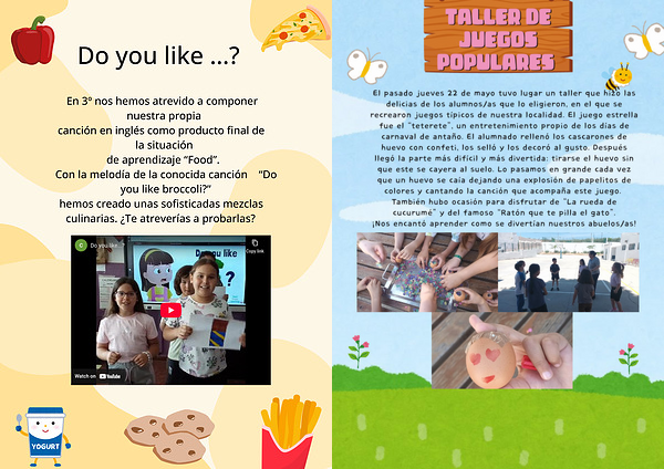 En 3 º nos hemos atrevido a componer nuestra propia canción en inglés como producto final de la situación de aprendizaje“ Food”. Con la melodía de la conocida canción“ Do you like broccoli?” hemos creado unas sofisticadas mezclas culinarias. ¿ Te atreverías a probarlas?