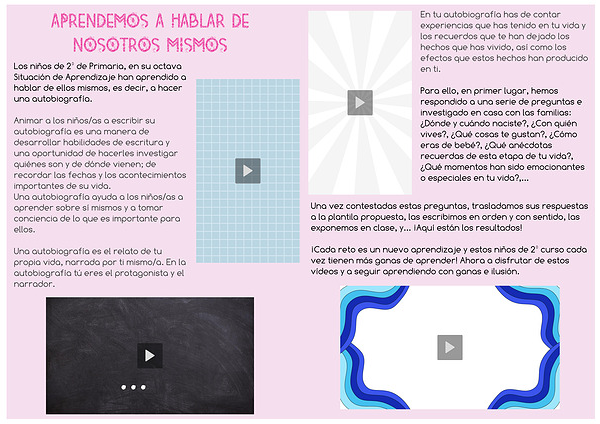 Los niños de 2º de Primaria, en su octava Situación de Aprendizaje han aprendido a hablar de ellos mismos, es decir, a hacer una autobiografía.