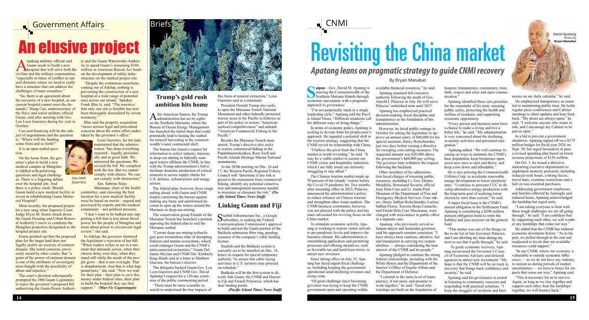 After American Samoa, the Trump administration has set its sights on the Northern Marianas, where the Bureau of Ocean Energy Management has launched the initial steps that could potentially lead to leasing the seabed for mineral harvesting in the commonwealth’s outer continental shelf. The bureau has issued a request for information to solicit industry interest in deep-sea mining in federally managed waters offshore the CNMI, in line with the Trump administration’s bid to facilitate domestic production of critical minerals to secure supply chains for U.S. defense, infrastructure and energy.
