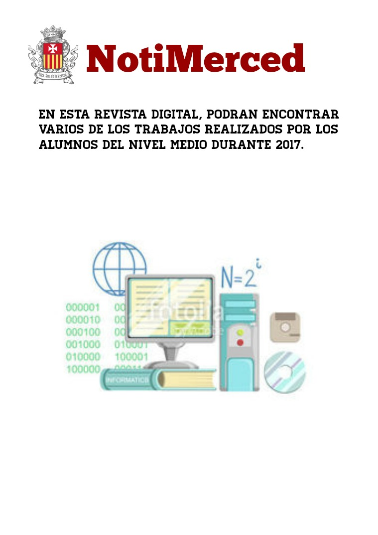 EN ESTA REVISTA DIGITAL, PODRAN ENCONTRAR VARIOS DE LOS TRABAJOS REALIZADOS POR LOS ALUMNOS DEL NIVEL MEDIO DURANTE 2017.