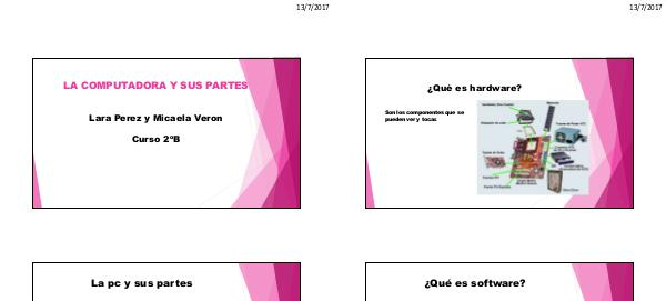 LA COMPUTADORA Y SUS PARTES Lara Perez y Micaela Veron Curso 2ºB La pc y sus partes