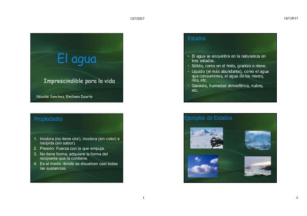 • El agua se encuentra en la naturaleza en