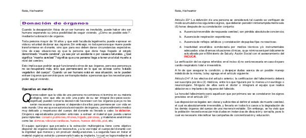 Artículo 23°: La defunción de una persona se considerará tal cuando se verifiquen de
