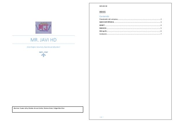 MR. JAVI HD ¡Con bajos recursos, buenos productos! Alumnos: Suarez Julia, Montes de oca Camila, Romero Kevin, Estigarribia Alan.