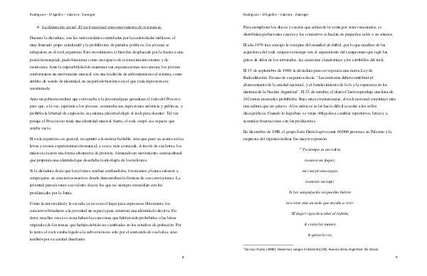refugiaron en el rock argentino. Este movimiento, si bien fue desplazado por la fuerza a una