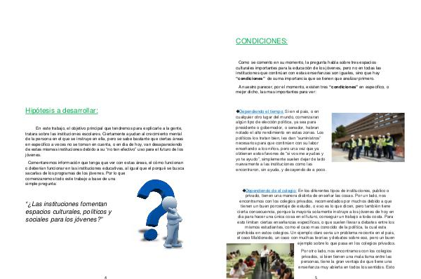culturales importantes para la educación de los jóvenes, pero no en todas las