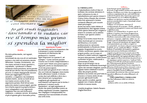 terrorizzati da una cosa di cui sentivamo parlare e che tutti noi avremmo dovuto affrontare : l’esame. Ovviamente , ora che siamo arrivati in terza i genitori e , soprattutto , i professori ci stanno mettendo molta pressione, anche perché molti di loro dicono che non prenderemo più di 8. Ci stiamo impegnando davvero molto per raggiungere il nostro obiettivo , e sappiamo che dobbiamo studiare molto , anche se molti di noi non hanno ancora scelto di che argomento parlare. Molti di noi sono parecchio ansiosi e preoccupati , perché non è facile esporre la propria tesina a voce collegandosi a vari argomenti. Sappiamo che non sarà facile però dobbiamo , o almeno cercare , di studiare di più di quanto già lo facevamo prima.