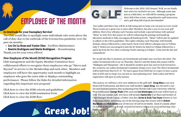 Welcome to the 2020-2021 Season ! Well , we are finally here and very excited to see you . Although some may join us a little later , we will still be running a program that ’ s full of fun events , comprehensive golf instruction , and a golf shop full of great merchandise !