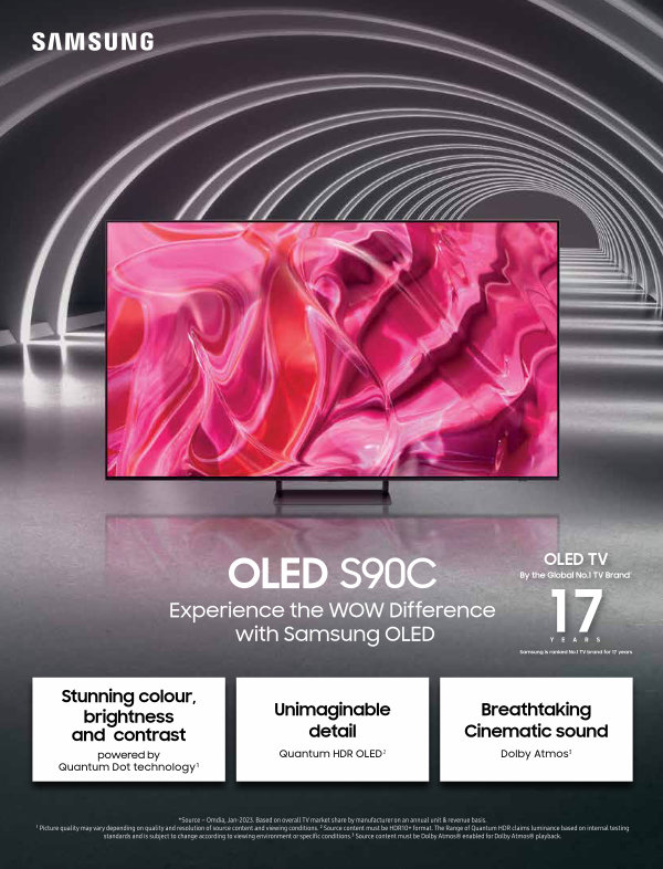 * Source – Omdia, Jan-2023. Based on overall TV market share by manufacturer on an annual unit & revenue basis. ¹ Picture quality may vary depending on quality and resolution of source content and viewing conditions. ² Source content must be HDR10 + format. The Range of Quantum HDR claims luminance based on internal testing standards and is subject to change according to viewing environment or specific conditions.³ Source content must be Dolby Atmos ® enabled for Dolby Atmos ® playback.
