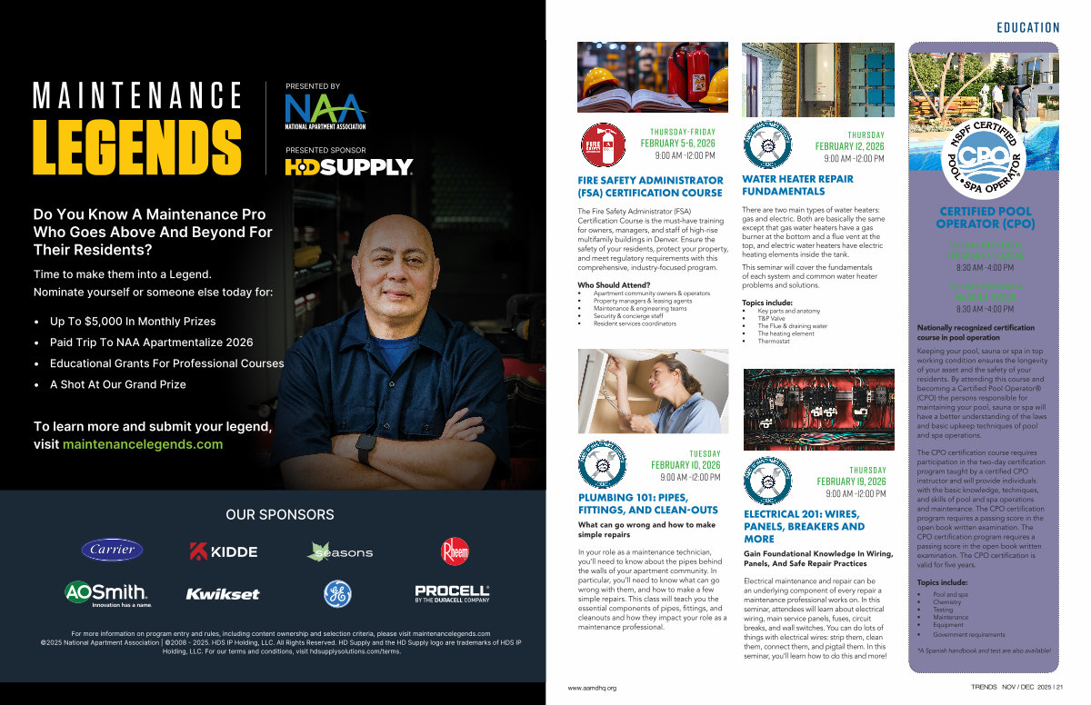 For more information on program entry and rules, including content ownership and selection criteria, please visit maintenancelegends. com © 2025 National Apartment Association | © 2008- 2025. HDS IP Holding, LLC. All Rights Reserved. HD Supply and the HD Supply logo are trademarks of HDS IP Holding, LLC. For our terms and conditions, visit hdsupplysolutions. com / terms.