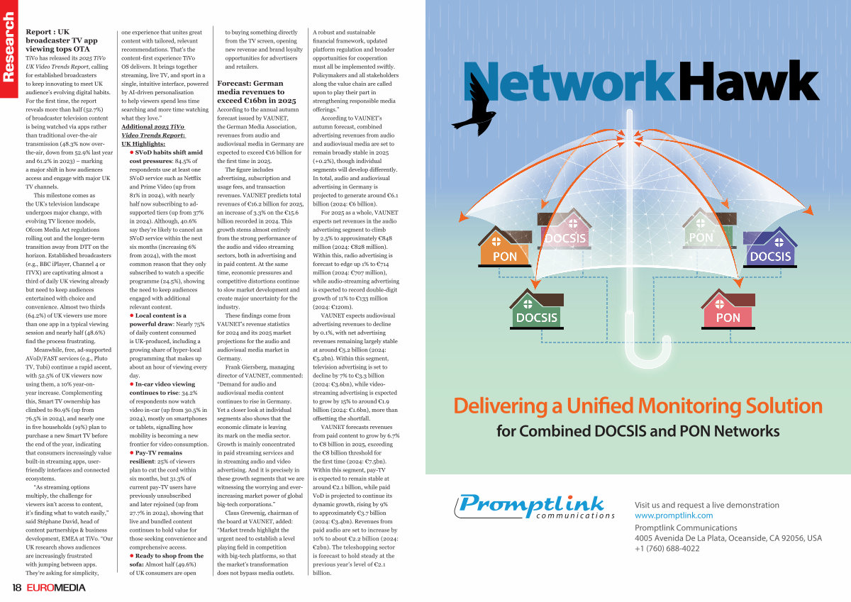 one experience that unites great content with tailored, relevant recommendations. That’ s the content-first experience TiVo OS delivers. It brings together streaming, live TV, and sport in a single, intuitive interface, powered by AI-driven personalisation to help viewers spend less time searching and more time watching what they love.” Additional 2025 TiVo Video Trends Report: UK Highlights: