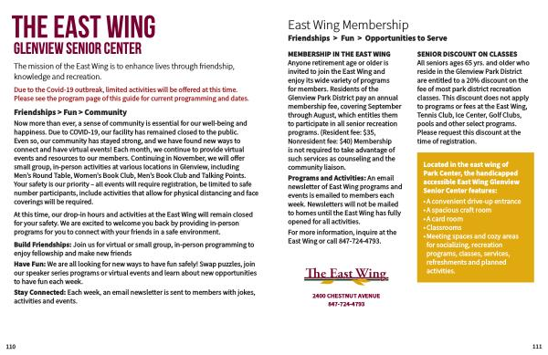 Now more than ever , a sense of community is essential for our well-being and happiness . Due to COVID-19 , our facility has remained closed to the public . Even so , our community has stayed strong , and we have found new ways to connect and have virtual events ! Each month , we continue to provide virtual events and resources to our members . Continuing in November , we will offer small group , in-person activities at various locations in Glenview , including Men ’ s Round Table , Women ’ s Book Club , Men ’ s Book Club and Talking Points . Your safety is our priority – all events will require registration , be limited to safe number participants , include activities that allow for physical distancing and face coverings will be required .