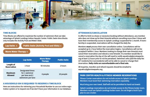 Time Blocks are offered to maximize the number of swimmers that can take advantage of Splash Landings Indoor Aquatic Center . Public Swim time blocks only includes the Activity Pool and Water Slide .