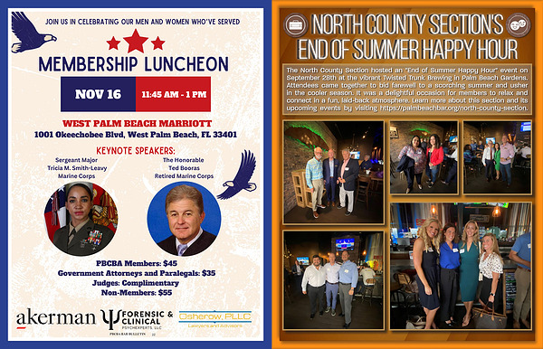 The North County Section hosted an " End of Summer Happy Hour " event on September 28th at the vibrant Twisted Trunk Brewing in Palm Beach Gardens . Attendees came together to bid farewell to a scorching summer and usher in the cooler season . It was a delightful occasion for members to relax and connect in a fun , laid-back atmosphere . Learn more about this section and its upcoming events by visiting https :// palmbeachbar . org / north-county-section .