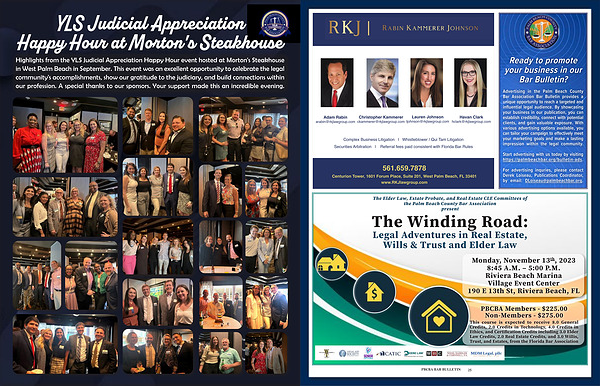 Advertising in the Palm Beach County Bar Association Bar Bulletin provides a unique opportunity to reach a targeted and influential legal audience . By showcasing your business in our publication , you can establish credibility , connect with potential clients , and gain valuable exposure . With various advertising options available , you can tailor your campaign to effectively meet your marketing goals and make a lasting impression within the legal community .