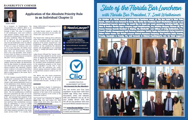 On October 5 th , PBCBA hosted a membership luncheon event , at The Ben Hotel in West Palm Beach , where we were honored to have The Florida Bar President , Scott Westheimer , serve as our distinguished keynote speaker . We would like to thank our event sponsors , including Smith , Ball , Báez & Prather Florida Injury Lawyers ; Legal Graphicworks , Inc ; Brinkley Morgan ; Thomas Ali , PA ; Searcy Denney Scarola Barnhart & Shipley , PA ; GOLDLAW - Law Offices of Craig Goldenfarb , P . A .; Pursuit Wealth Management ; Reid Burman Lebedeker Xenick Pepin ; Rottenstreich Farley Bronstein Fisher Potter Hodas LLP ; Florida Lawyers Mutual Insurance Company ; First Horizon Bank ; Pressly , Pressly , Randolph & Pressly , PA ; and Forensic & Clinical PsychExperts , LLC , for their support .