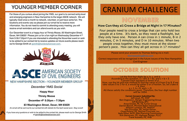 Please send your answers to Thomas Selling via e-mail : thomasselling @ me . com Correct responses will be recognized in the future issues of the New Hampshire Civil Engineer