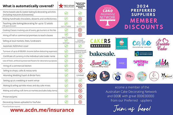 Become a member of the Australian Cake Decorating Network and SAVE with great DISCOUNTS from our Preferred Suppliers