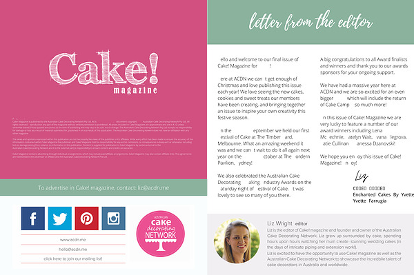 To advertise in Cake ! magazine , contact : liz @ acdn . me