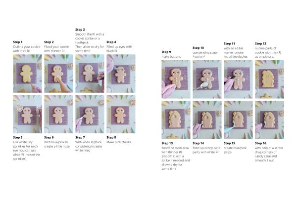 Step 5 Step 6 Step 7 Step 8 Use white tiny sprinkles for each eye ( you can use white RI instead the sprinkles )