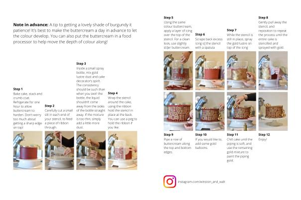 Wrap the stencil around the cake , using the ribbon hold the stencil in place at the back . You can use a peg to hold the ribbon if you like .