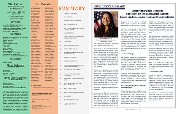 Views and conclusions expressed in articles and advertisements here are those of the authors or advertisers and not necessarily those of the officers, directors, or staff of the Palm Beach County Bar Association. Further, the Palm Beach County Bar Association, its officers, directors, and staff do not endorse any product or service advertised. Copy deadline is the first of the month preceding publication.