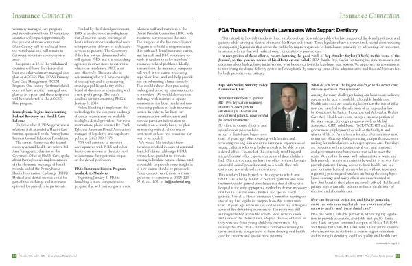 In recognition of these efforts , we are featuring the good work of Rep . Stanley Saylor ( R-York ) in this issue of the Journal , so that you are aware of his efforts on our behalf . PDA thanks Rep . Saylor for taking the time to answer our questions about his legislative initiatives and what he expects from the legislature next session . We appreciate his commitment to improving the dental delivery system in Pennsylvania by removing some of the administrative and financial barriers felt by both providers and patients .