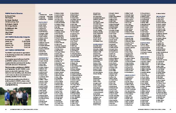 This list contains contributors to PADPAC as of September 19, 2017. PADPAC contributions received after September 19, but before the next dues billing cycle, November 1, 2017, were not able to be included due to publishing deadlines for the Journal.