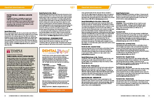 PRACTICE FOR SALE – LANDISVILLE, LANCASTER COUNTY Established GP Practice in Landisville, Lancaster County. $ 380K 3 / yr average collections. Doctor is retiring after a successful career, willing to mentor and / associate if needed. Real estate can be included. Mostly FFS practice with sleep representing 1 / 4th of production. $ 265K sell price. Contact aeberhardt @ dentalcooperative. com.