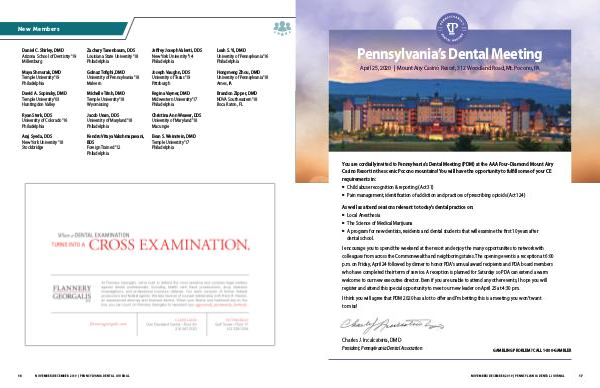 N OVEM BER/DECEM BER 2019 | P EN N SYLVAN IA DEN TAL JOURNAL