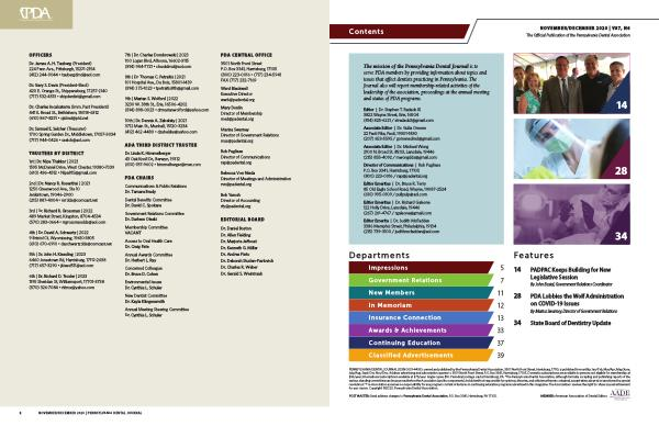 NOVEMBER / DECEMBER 2020 | V87 , N6 The Official Publication of the Pennsylvania Dental Association