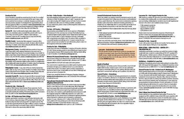 Practice for Sale – Philadelphia Center City , in the heart of Philadelphia . 5 operatory GP practice collecting $ 1.3 mil +. Robust , growing practice in prime Rittenhouse Square location . Strong Hygiene program . Well-managed practice . Retiring dentist willing to stay for transition . Email rittenhousedds @ gmail . com .