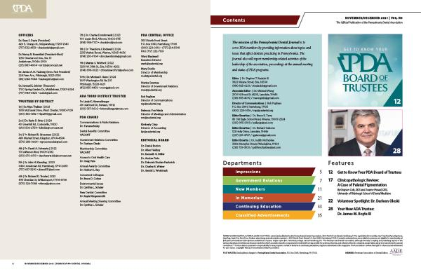 NOVEMBER / DECEMBER 2021 | V88 , N6 The Official Publication of the Pennsylvania Dental Association