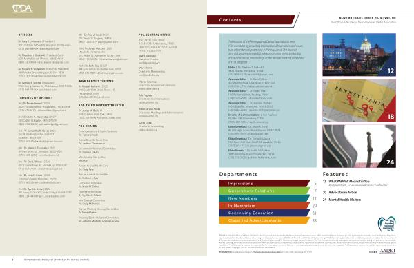 2 NOVEMBER / DECEMBER 2024 | PENNSYLVANIA DENTAL JOURNAL