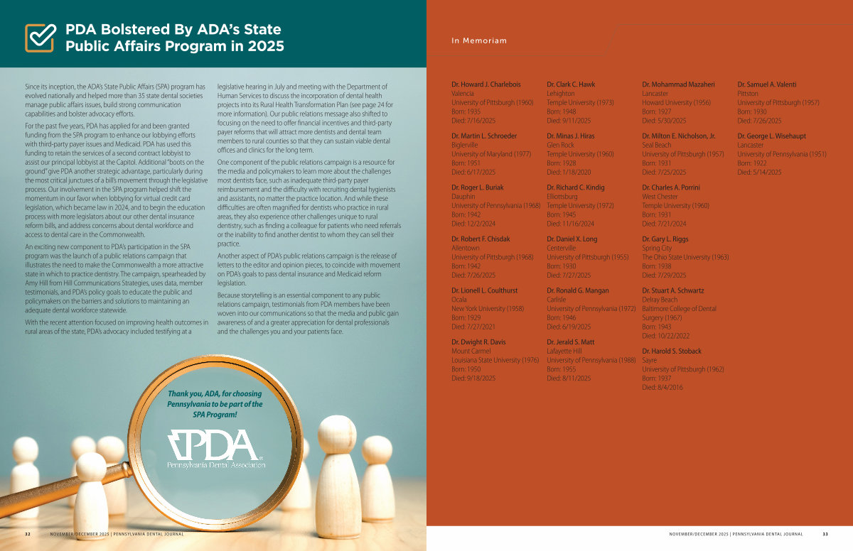 32 NOVEMBER / DECEMBER 2025 | PENNSYLVANIA DENTAL JOURNAL