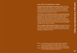 In support of the data presented in t Standards Guide ), further information o included in the next section . Presented Land Types of Queensland-Burdekin . V detailed descriptions on the land condi land types found in the Burdekin Dry T