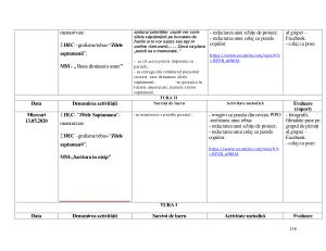 Data Denumirea activităţii Sarcini de lucru Activitate metodică Evaluare