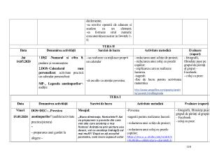 Data Denumirea activităţii Sarcini de lucru Activitate metodică Evaluare (raport)