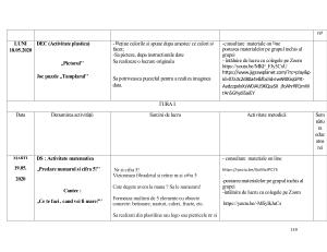 Data Denumirea activităţii Sarcini de lucru Activitate metodică Sem