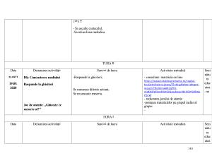 Data Denumirea activităţii Sarcini de lucru Activitate metodică Sem