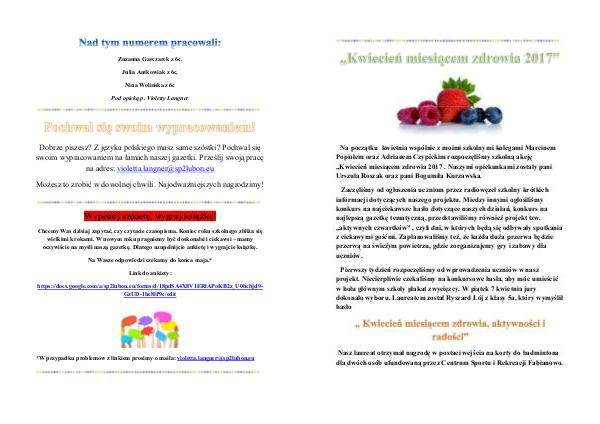 oczywiście na myśli naszą gazetkę. Dlatego uzupełnijcie ankietę i wygrajcie ksiąŜkę.