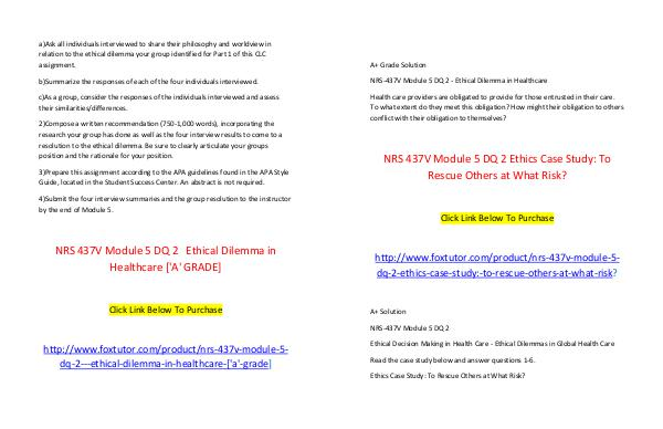 NRS 437V Module 5 DQ 2 Ethical Dilemma in