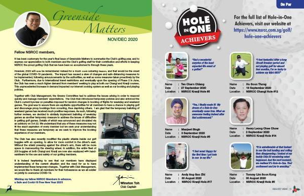 It has been customary for the year ’ s final issue of Greenside Matters to summarise the Club ’ s golfing year , and to express our appreciation to both members and the Club ’ s golfing staff for their contribution and efforts in keeping NSRCC the proud golfing Club that we have been so accustomed to through these years .
