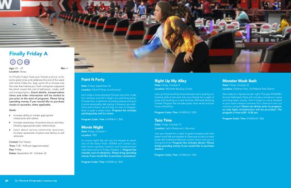 It ' s Finally Friday ! Grab your friends and join us for some great times and celebrate the end of the week with some Friday fun . Sign up for all or choose only the ones that interest you . Each outing has a separate fee which covers the cost of admission , meals , staff and transportation . Event details , transportation times and other information will be mailed to you prior to the start of programs . Please bring spending money if you would like to purchase snacks or souvenirs , when applicable .