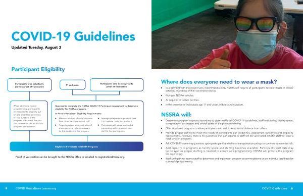 » Provide proper staffing to meet the needs of participants per guidelines , assessment outcomes and eligibility requirements , however , there is no guarantee that participants or staff will be vaccinated . NSSRA staff will wear a mask while in programs .