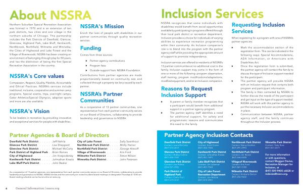 NSSRA recognizes that some individuals with disabilities would benefit from social opportunities available by participating in programs offered through their local park district or recreation department . Inclusion provides a choice for individuals of varying abilities to experience recreation programming within their community . An Inclusion companion ’ s role is to blend into the program with the partner agency staff while providing the appropriate amount of support to promote independence .