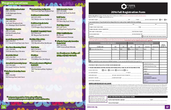 In addition to program sites, we have NSSRA pick up and drop off sites for participants. Please list your pick up and drop off codes below (see page 56). When signing up for optional transportation,